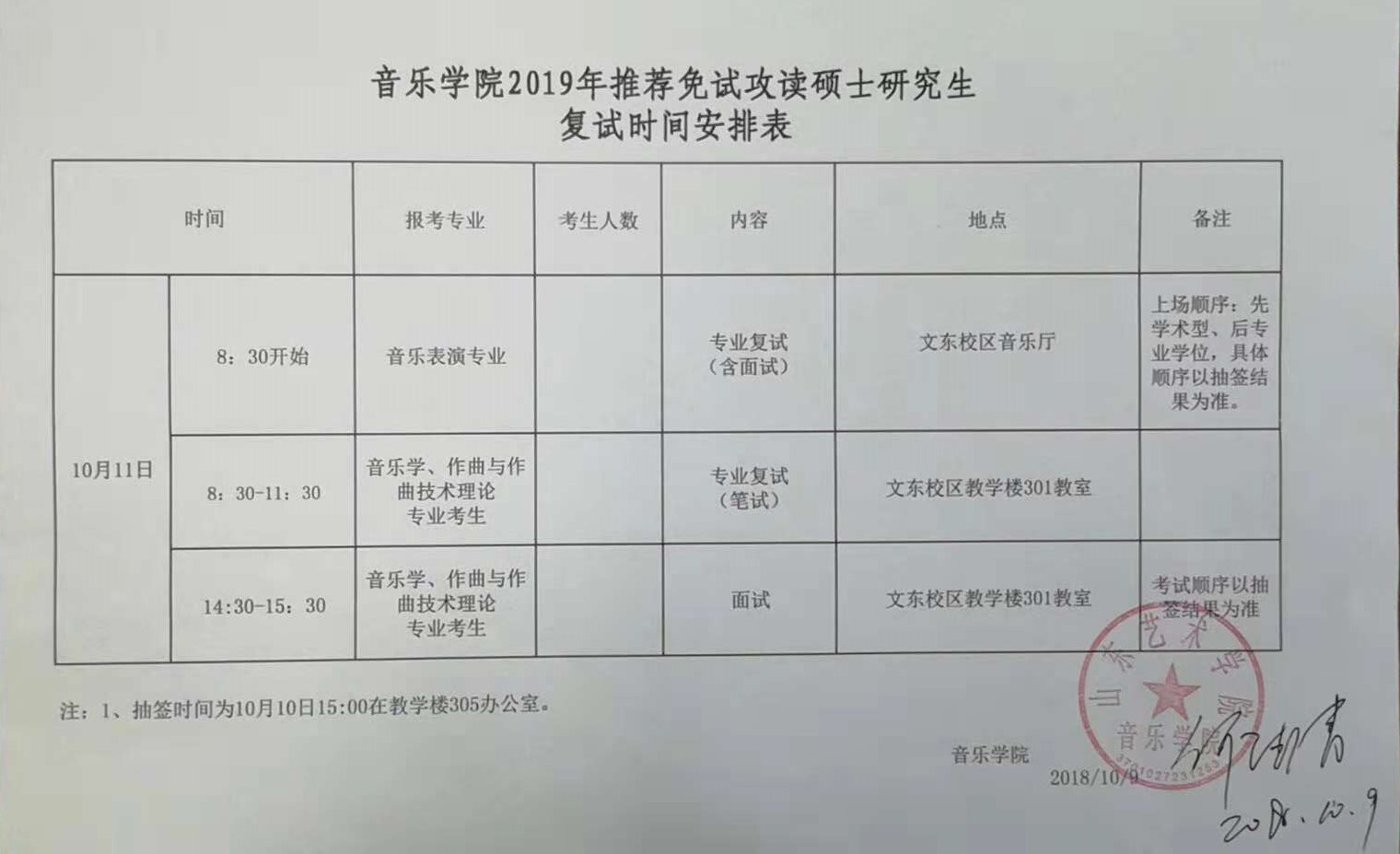 音乐学院2019年推荐免试攻读硕士研究生复试时间安排表