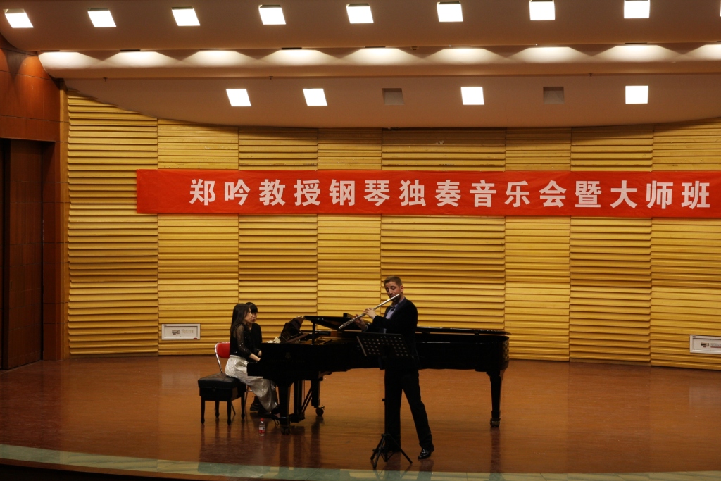 当日下午三点,郑吟博士独奏音乐会正式开始,通过几首不同时期各具特色的乐曲的演奏,充分展示了大师的风采,引来掌声阵阵。特别是最后与长笛大师亚历山大哈斯金合奏作曲家肖恩费尔德作品《为钢琴和长笛而作的纪念小品》深受观众喜爱,掌声不歇。