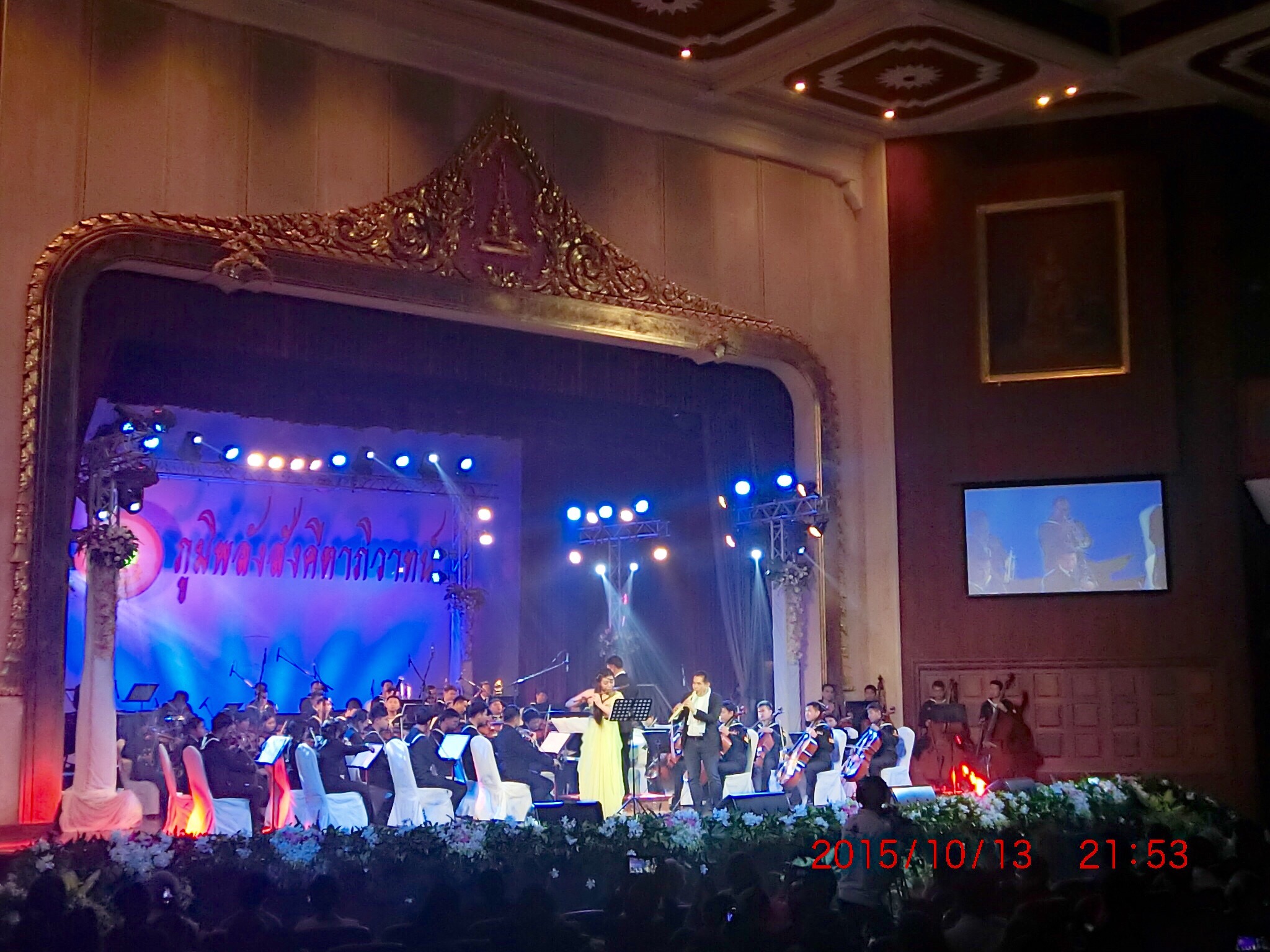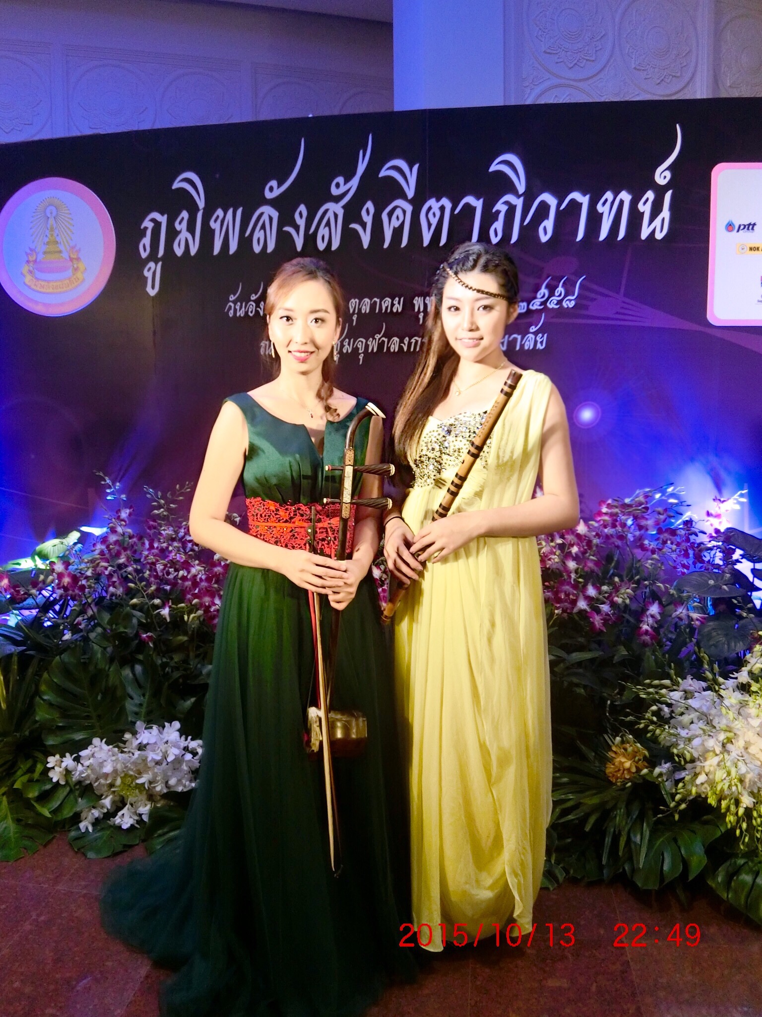 10月13日,由泰国中国文化中心与山东省联合举办的2015泰国“山东文化年”活动,经山东省文化厅与山东艺术学院协商,特邀我院二胡专业霍永康老师与竹笛专业二年级研究生宫媛赴泰国朱拉隆攻大学参加泰国诗琳公主60寿辰慈善音乐会的演出活动。此次演出汇集了泰国音乐届的国宝级大师,由泰国皇家海军管弦乐团担任伴奏。泰国政界、商界、中泰艺术交流中心人士及泰国皇室成员观看演出。