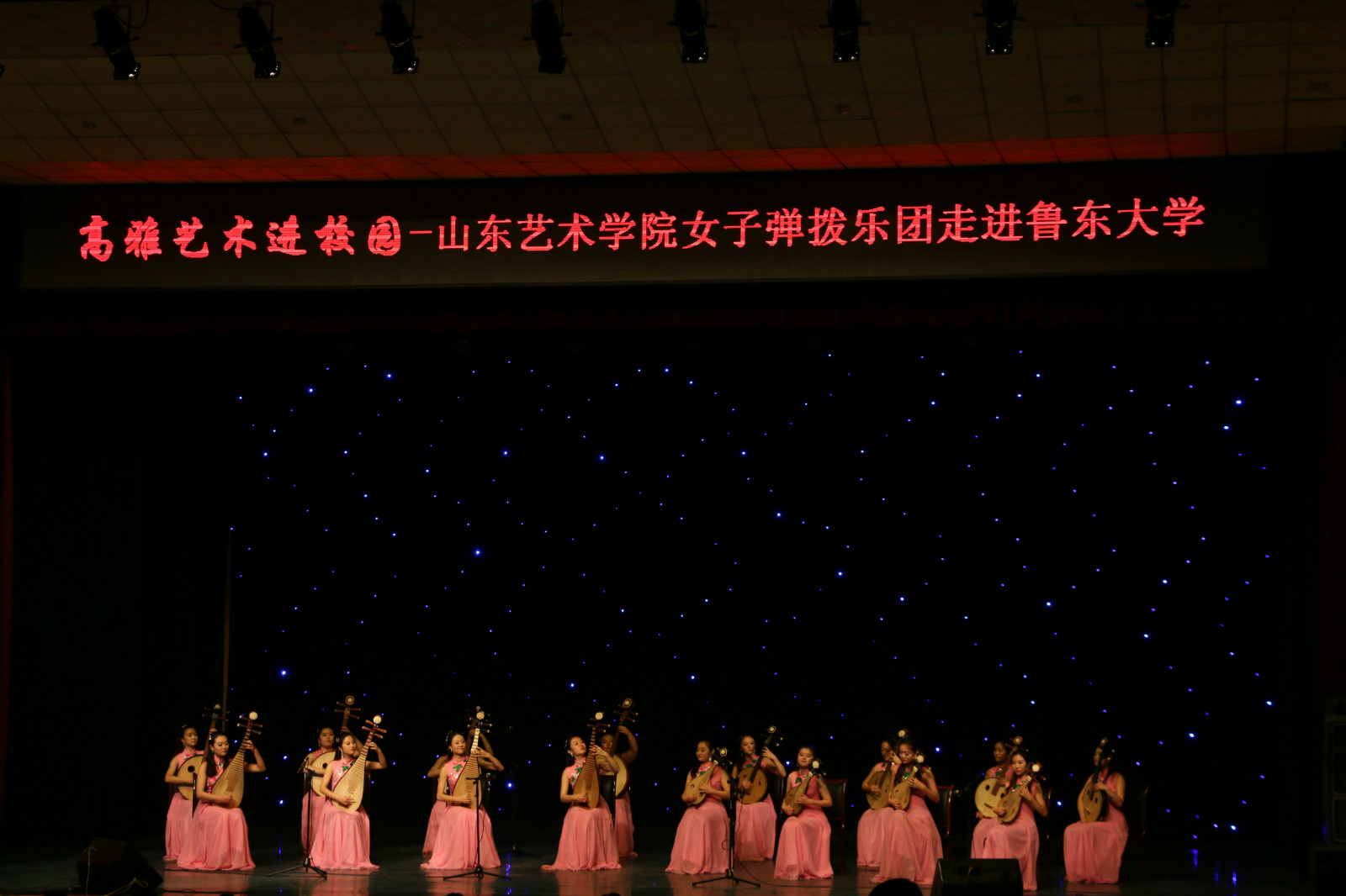 11月23日至26日,山东艺术学院女子弹拨乐团在高密五中、山东工商学院、烟台大学、鲁东大学等四所院校进行了高雅艺术进校园的演出活动。