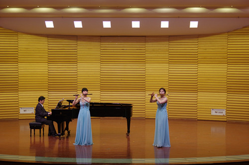 为欢迎罗马尼亚布加勒斯特国立艺术大学院长凯特林和巴列斯库教授,加强两校间的友好交流与合作,2015年4月16日晚在山东艺术学院艺术剧场一楼音乐厅举办了专场音乐会。山东艺术学院党委书记李宗伟陪同罗马尼亚外宾观看了音乐会,音乐学院相关负责人及部分师生一同观看了演出。