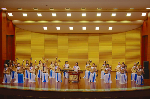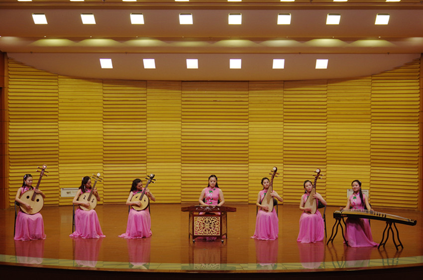 音乐会以泉韵女子弹拨乐团的弹拨乐合奏《鲁腔》拉开序幕,此曲由何清涛院长为本团创作并荣获第七届“泰山文艺奖”音乐类二等奖,鲜明的地方特色勾勒出一幅生动的齐鲁美景;笛子二重奏《采莲》吸收船工号子音乐素材创作,用优美的旋律描绘出秀丽的湖上风光,带着听众与采莲人一起高歌抒怀;接下来一曲琵琶与古筝《柳风》曾荣获2013齐鲁研究生学术论坛——艺术硕士音乐类一等奖,琵琶与古筝的默契演奏再现了古曲的风采,犹如远古的回声一般奏响;女声独唱《黄河渔娘》用音乐诉说着黄河渔娘的真实生活,让人为之赞叹;弹拨乐七重奏《春江花月夜》委婉质朴的旋律、丝丝入扣的演奏,描绘出月夜春江的迷人景色;二胡独奏《一枝花》独特的演奏技巧、悲壮激越的旋律将将朴实的山东特色展现的淋漓尽致;中阮独奏《云南的回忆》第三乐章荣获第四届“金芦笙”中国民族器乐大赛弹拨B组金奖,传统与现代的碰撞与融合,以幻想式的曲风带出迷人的风情和超脱的意境;男声独唱《没有睡意,不得休息,心灵痛楚》高超的演唱技巧带动观众的情绪,扣人心弦;弹拨乐重奏《天地星空》运用复调手法表现了深远的意境;最后上演的是由音乐学院李云涛院长为本团创作并荣获第十八届全国音乐作品(民乐)评奖优秀奖的弹拨乐合奏《春之舞》,掀起了整场音乐会的高潮,在乐团精彩的演奏下音乐会圆满落幕。此次音乐会向外宾展示了中国传统民族音乐,掌声不断,获得了观众们的一致好评。
