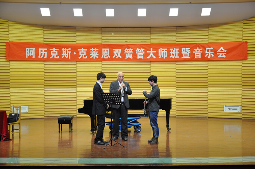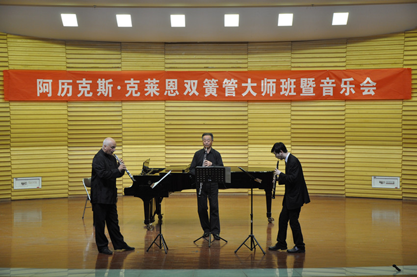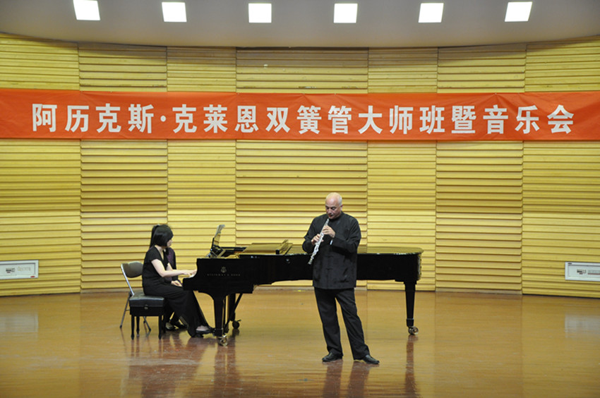 4月20日晚7:30分,阿历克斯·克莱恩双簧管独奏音乐会正式开始,通过几首各具特色的乐曲的演奏,充分展示了大师的风采,引来掌声阵阵。山艺聂立家教授作为特邀演奏家与阿历克斯·克莱恩同台演奏了《浪漫曲》和《C大调双簧管与英国管三重奏》,把整场演出推向了高潮。