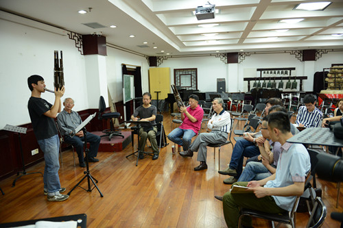2014年6月4日至8日,应上海音乐学院民乐系的邀请,山东艺术学院牟善平教授、牟楠副教授赴上海音乐学院为院内外笙专业师生开设公开大师班讲课并设个别或小组专家课。山东艺术学院牟善平教授独创“牟氏笙演奏风格”在全国笙界独树一帜,他研制的37簧圆斗笙,在保留传统的基础上将音域扩展,为笙的演奏与教学开辟了极大的空间。近几十年积极影响和推动了中国笙在教学,演奏,作品创作及乐器改革领域的发展,为近代中国笙艺术的发展创新做出巨大的贡献。牟楠副教授不但继承了父亲独创的“牟氏演奏风格”,而且集笙界名家翁镇发教授,徐超铭教授之长,形成自己的演奏风格,在笙界享有盛名。此次大师班授课分为两方面内容:一方面是牟氏父子在笙的演奏风格,独创演奏的技法,以及多年来所创作乐曲的分析及示范。另一方面牟氏父子对笙专业学生进行了个别授课。