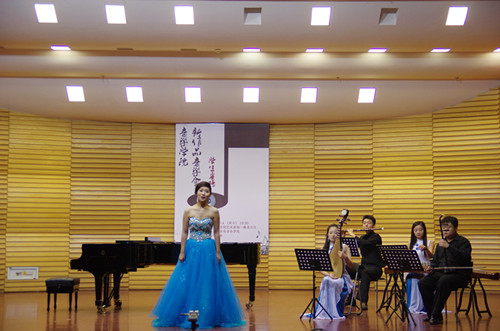 2014年6月15日晚,由音乐学院主办,理论作曲系承办的学生专场新作品音乐会在我校艺术剧场音乐厅成功举办。本次音乐会共演出了13名学生的声乐、器乐作品,风格多元,形式多样,展示了音乐学院作曲教学和创作的成绩。