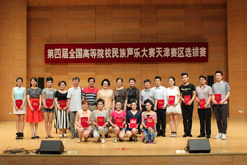 2014年6月13日—14日,第四届全国高等院校民族声乐大赛天津赛区选拔赛在天津音乐学院南院图书馆报告厅举行,比赛由中国民族声乐艺术研究会、中国音乐学院、浙江传媒学院音乐学院主办,以科学发展观为指导,以建设和谐社会为目标,以发展民族音乐艺术为要务。 进一步促进民族声乐艺术的发展,更快地提高全国民族声乐的教学水平,使其在理论上更系统化、学术上更多元化、风格上更民族化、技术上更科学化,更快、更多地培养大量优秀的民族声乐人才。比赛按高等艺术院校“本科生组”“研究生组”“教师组”和综合、师范类院校“本科生组”“研究生组”“教师组”六个组别进行,经过四个省参赛选手激烈角逐,共选出36名选手入围比赛半决赛资格。