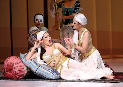 11月28日,国家大剧院制作的罗西尼喜歌剧《意大利女郎在阿尔及尔》在大剧院戏剧场首演亮相。我校音乐学院青年教师宋元明教授与意大利女中音西尔维亚•贝尔特拉米、旅欧华人男高音歌唱家石倚洁等一起出演。这些演员均是大剧院特别挑选的最适合演唱罗西尼歌剧、专攻此类作品的一批优秀歌唱家,也都是曾多次演唱罗西尼作品的实力唱将。演员们精彩的演唱、滑稽幽默的表演让观众忍俊不禁,而别出心裁的“动画感”舞台呈现和极具时尚感的服装设计则更是牢牢抓住了观众的眼球。宋元明在首演中的表演尤为出色,她在剧中饰演穆斯塔法的妻子“埃尔维拉”,优美润泽的音质很好的体现了这个温柔而逆来顺受的角色,得到了广泛的好评。