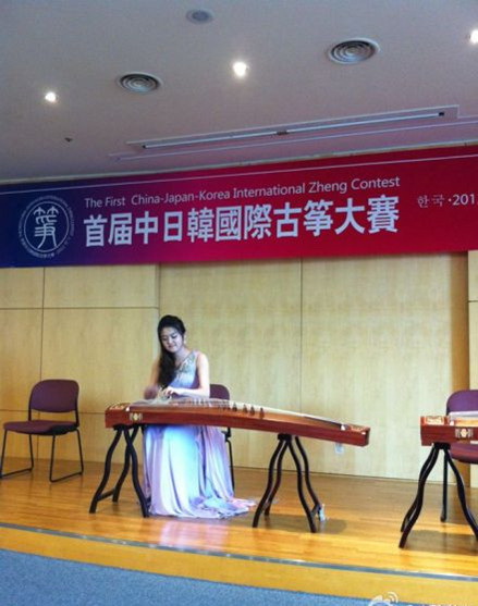 2012年5月22日,“华乐之韵”首届中日韩国际古筝大赛在韩国首尔落下帷幕。我院音乐学院2010级本科古筝专业学生梁瀚文在此次强手如林的大赛中获得专业B组青年1组金奖。梁瀚文的指导老师姚宁馨老师也荣获“优秀教师奖”。