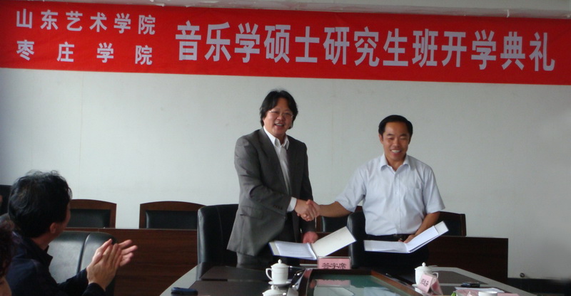 典礼上,枣庄学院副院长李进京首先致欢迎词,他代表枣庄学院对山东艺术学院领导们的到来表示热烈的欢迎,对在枣庄学院设立研究生办学点给予的帮助与支持表示感谢。并介绍了枣庄学院发展历程以及音乐系的办学情况。