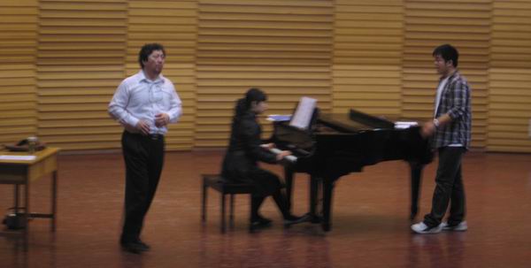 2009年4月14日至17日,由山东艺术学院教务处、音乐学院共同主办的声乐大师班在我院艺术剧场顺利举行,本次声乐大师班有幸邀请到上海音乐学院声乐系葛毅教授进行授课。音乐学院院长郑中教授致开场词,代表全院师生热烈欢迎葛毅教授的莅临指导。音乐学院党总支书记王世慧教授、音乐教研室主任罗余瑛副教授等领导听取了讲座。三天时间里,各年级演唱专业的老师、同学,以及爱好声乐的各院校人士都慕名前来观看,整个音乐厅座无虚席,讲座现场气氛热烈。