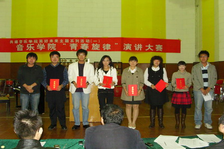 2008年11月2日晚7:00,在山东艺术学院音乐学院演播厅隆重举办了“共建音乐学院美好明天”为主题的演讲比赛,参加比赛的选手有07、08级部分学生,出席观看的评委有团总支老师钱凯、学生会主席刘轶、自律会主席王乐天及这些团体的学生干部等。