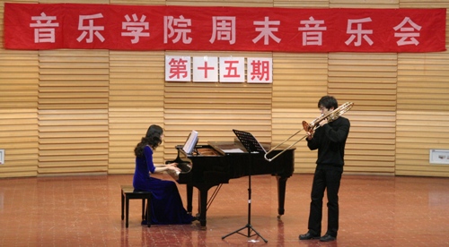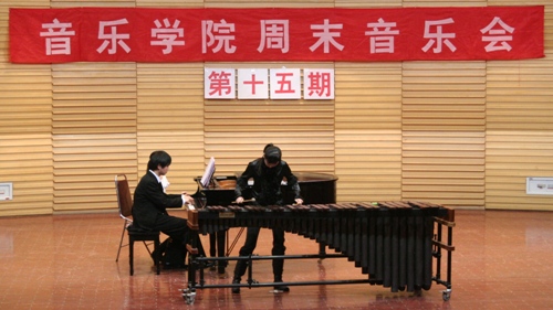2008年3月22日晚19时30分,周末音乐会在艺术剧场一楼拉开帷幕。这是开学以来第二场音乐会,也是第一场管弦专场音乐会。音乐会在《小提琴三重奏》和谐的音乐中开始,优雅的音乐荡漾着会场。由于天气的原因,今天的观众没有往常的多。场外的雨越下越大,场内的气氛也越来越浓。这次的节目以小提琴、中提琴、大提琴、长号、大号等管弦乐器独奏为主,中间穿插着一些重奏、协奏曲。最后一曲精彩的马林巴独奏《天堂与地狱》把音乐会推向高潮,观众们也激动地打着节奏,欢快的音乐带给人们无限的乐趣。
