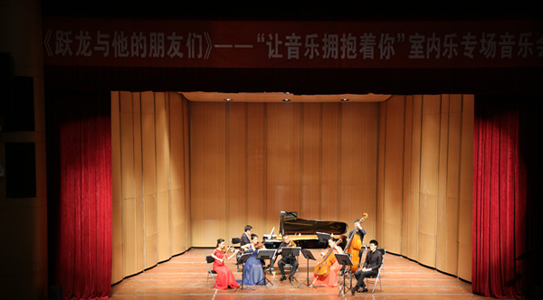 4月27日晚,由北京跃龙腾飞文化艺术有限公司携手山东艺术学院主办,山东艺术学院音乐学院、艺术实践创作处承办的《跃龙与他的朋友们》——“让音乐拥抱着你”室内乐专场音乐会在山东艺术学院文东校区艺术剧场三楼大剧场隆重上演。山东省文化厅副厅长张桂林、山东艺术学院党委书记李宗伟、副院长高启光等领导与音乐学院师生们共同欣赏了这场精妙绝伦的演出。