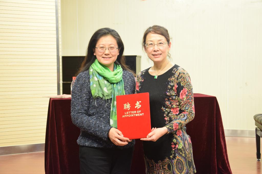 齐鲁师范学院音乐学院窦曼莉院长为王瑶教授颁发聘书