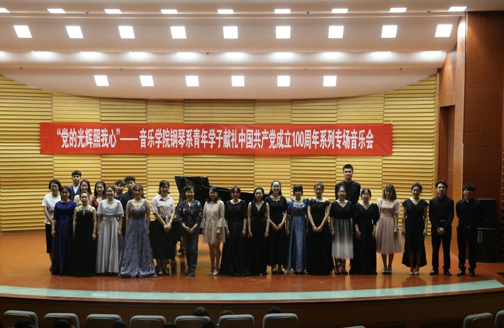 为深入学习贯彻习近平新时代中国特色社会主义思想,贯彻落实习近平总书记关于教育、文艺工作的重要论述,落实立德树人根本任务,推动艺术创作繁荣发展,6月8日和6月9日,音乐学院钢琴系在学校文东校区艺术剧场一楼音乐厅举办“党的光辉照我心”青年学子献礼中国共产党成立100周年系列专场音乐会。音乐学院相关专业师生观看音乐会。