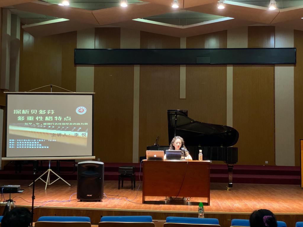 6月11日下午,由音乐学院主办、音乐学院钢琴系承办的音乐学院博士论坛2021学年第15场学术讲座《探析贝多芬多重性格特点——以早中晚期代表性钢琴奏鸣曲为例》在文东校区演播厅举办。本场讲座由旅美钢琴博士、山东艺术学院钢琴系教师李悦主讲,音乐学院钢琴系师生到场聆听。