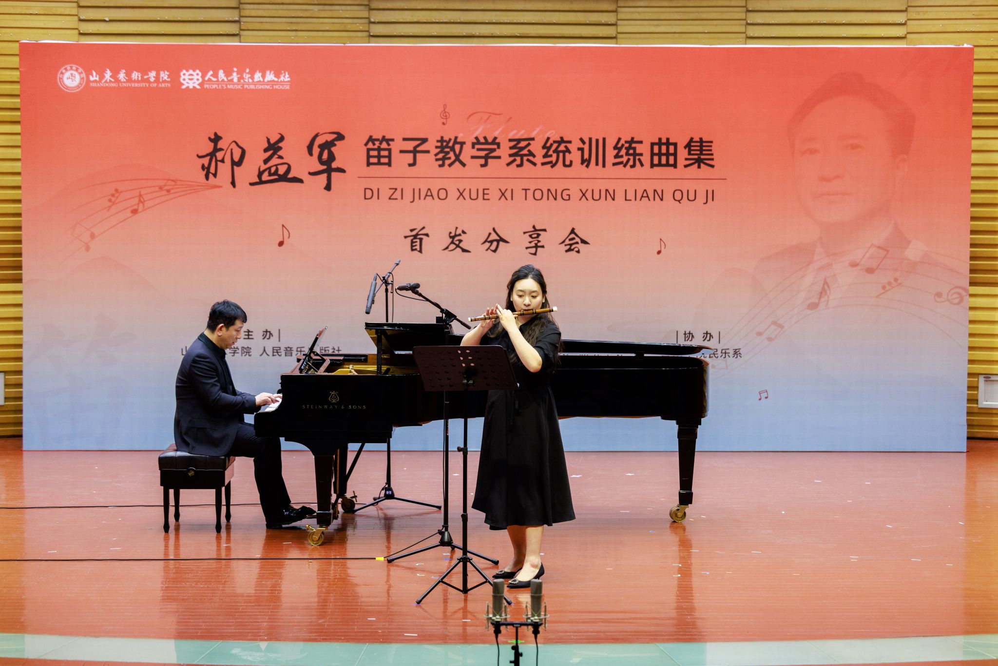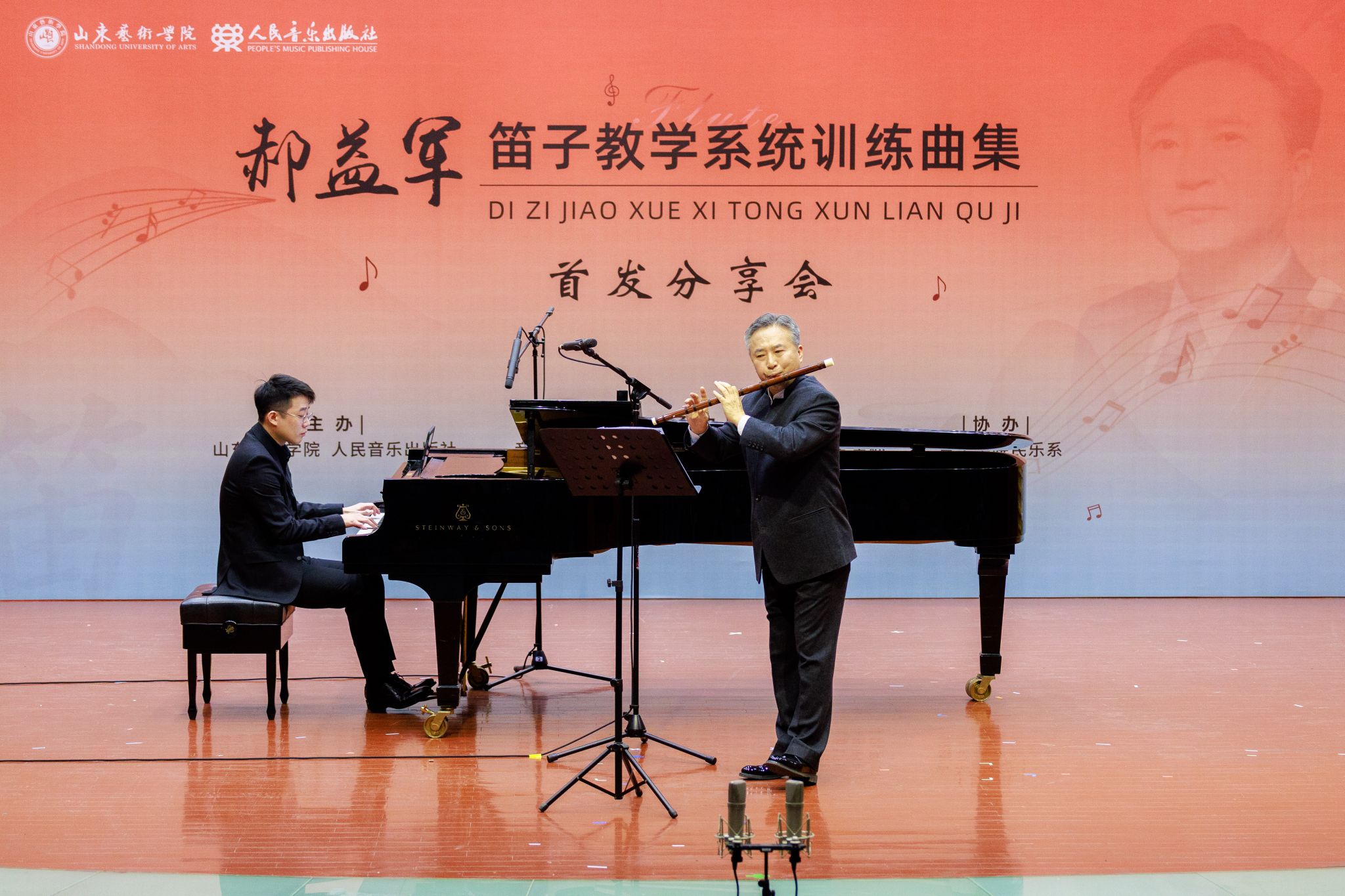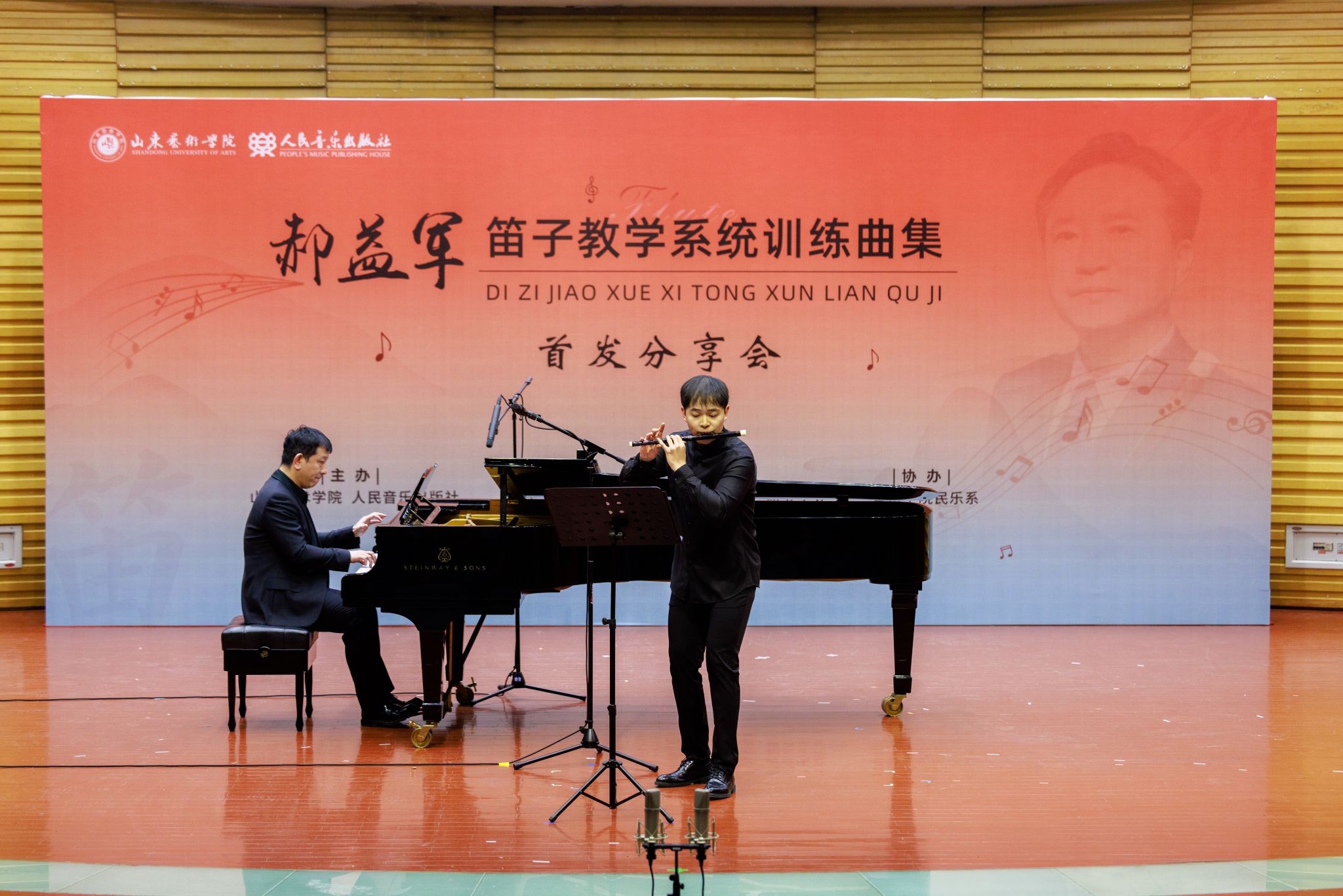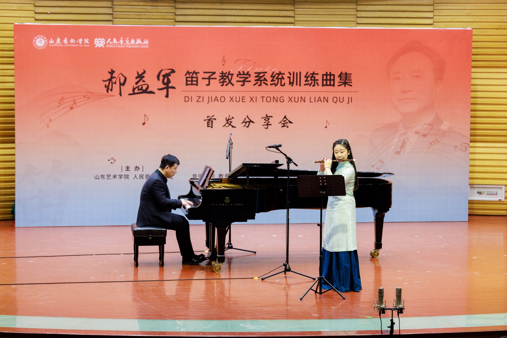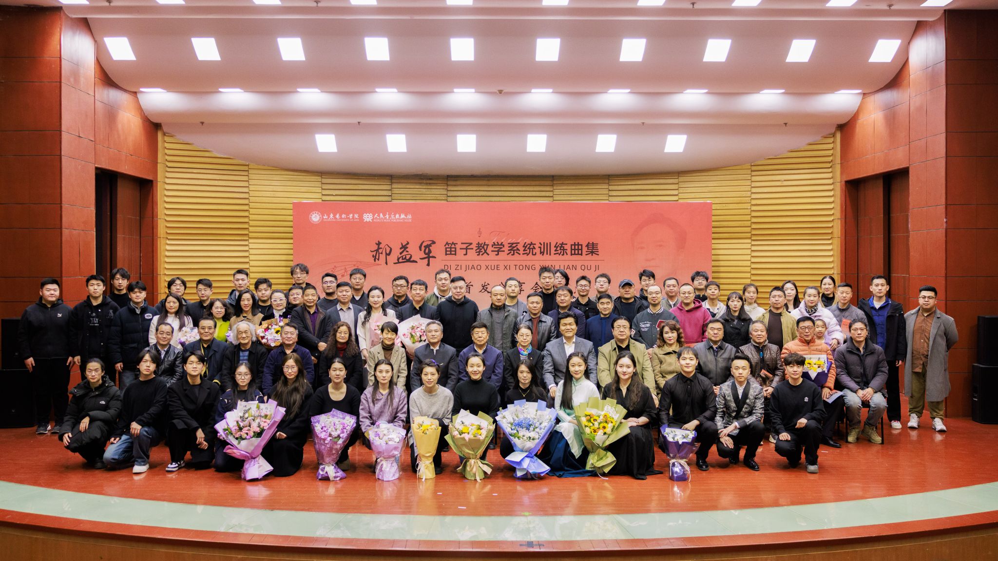 2025年3月29日下午,山东艺术学院音乐学院郝益军教授最新编著教材《笛子教学系统训练曲集》首发分享会在山艺音乐厅举行。人民音乐出版社副总编辑李向颖,人民音乐出版社第二编辑部主任刘滢,中国民族管弦乐学会党支部书记、中国广播艺术团原团长王书伟,中国民族管弦乐学会党支部副书记、国标委考级标准委员会委员田龙,中国竹笛学会副会长、江苏竹笛学会会长、江苏民族乐团一级演奏员王键,山东省音协主席、山东艺术学院音乐学院院长王歌群,山东艺术学院艺术实践与创作处处长朱长磊等嘉宾,与来自全国多所高校竹笛专业人士、音乐学院师生及社会各界音乐爱好者三百余人齐聚一堂,共同见证这一学术盛事。