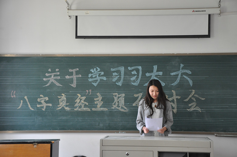 深刻的理解和分析使得在场的每一位同学能从不同的新角度理解了八字真经的意义,同学们互相交流讨论,氛围融洽,积极向上的空气充斥了整个教室。相信在以后的工作学习中,这八个字将会埋在同学们的心底,陪他们走过人生中的风雨浪头,相信以一份爱国之心,一定能让我们的祖国更加昌盛繁荣。