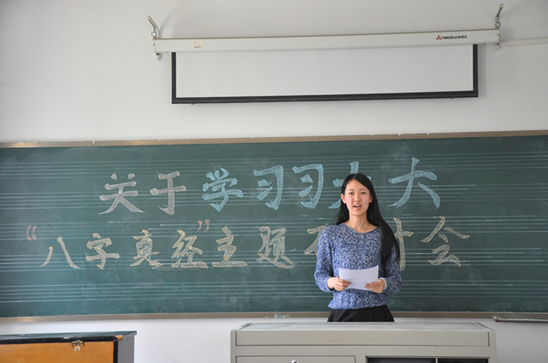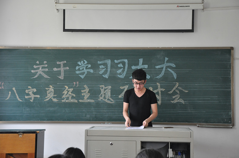 在讨论会上,各代表分别发表了了自己对八字真经不同的理解和学习八字真经的情况。 有的同学说:“习近平总书记的八字真经值得我们青年人仔细深刻的研究和学习,这并不是简单的八个字而已,勤学代表着对知识的渴求,人不可以没有知识追求,没有了知识追求就像是没有了稳固地基的房屋,这个社会需要知识力量,我们的国家也需要知识人才。修德代表着道德思想修养,德不单纯体现在任何一个小的方面,而在于整个人的道德,修则是修养和修炼,意示着道德并不是靠一日两日的行为或者一件两件的小事来体现的,需要长时间的积累。明辨代表着一双明亮的眼睛,意味着我们需要看清丑恶,明辨是非。笃实则代表脚踏实地认真做事,与上一个明辨结合起来,就是辨清事物本身之后,用踏实笃定的心态去做事。”