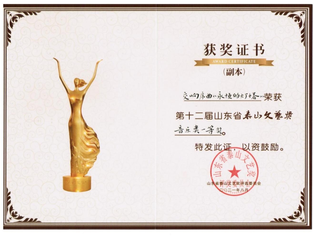 《永恒的灯塔》获第十二届山东省泰山文艺奖音乐类一等奖