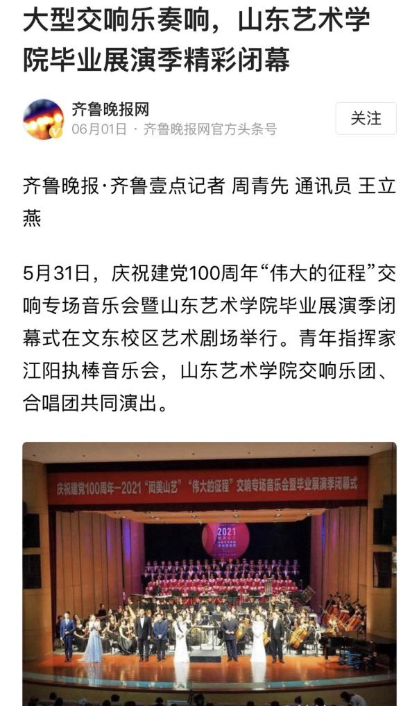 《大型交响乐奏响,山东艺术学院毕业展演季精彩闭幕》——齐鲁晚报
