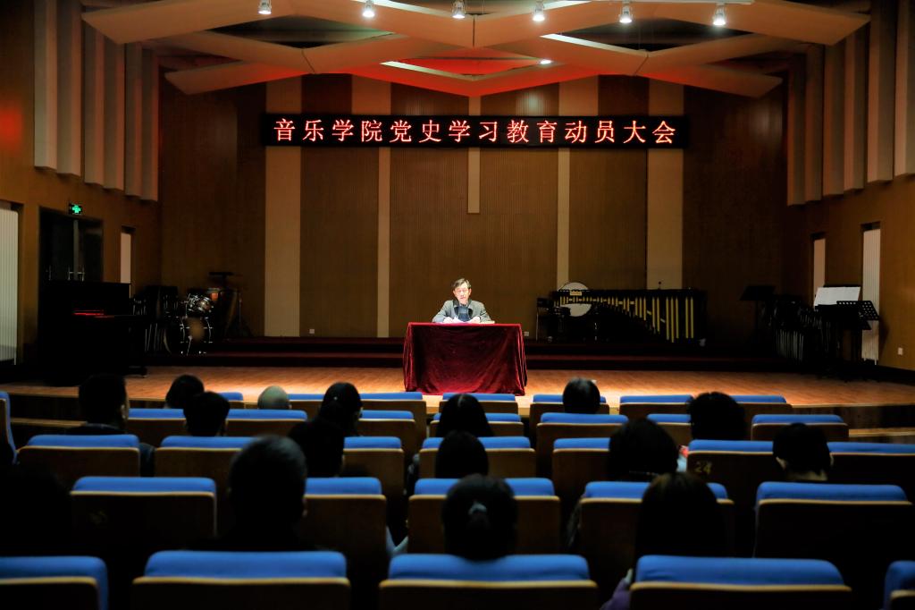 3月30日,为深入贯彻落实习近平总书记在党史学习教育动员大会上的重要讲话精神,巩固深化“不忘初心、牢记使命”主题教育成果,高标准高质量推进学院党史学习教育,根据中央、省委、省委教育工委和学校党委工作部署和要求,音乐学院在文东校区演播厅召开党史学习教育动员大会,对学院党史学习教育进行动员部署。音乐学院党总支书记李林峰,党总支副书记、院长李云涛,党总支副书记王志军出席会议,副院长孙志鸿列席会议,各党支部书记、支委,综合办公室、团总支、教科研办公室成员参加会议。