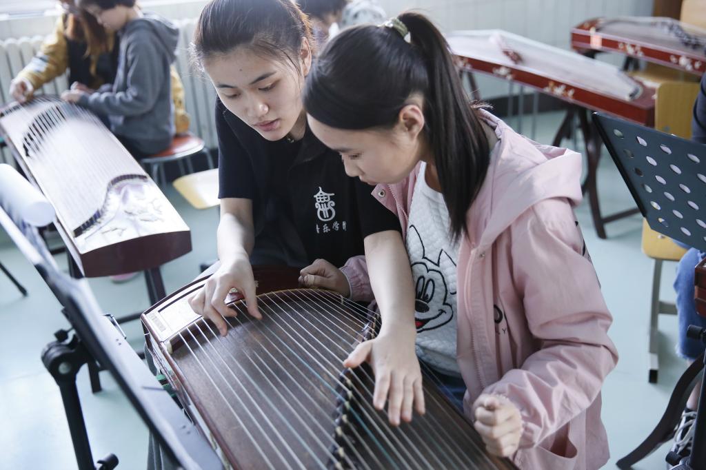 一首《丰收锣鼓》吸引了我们的注意力,这是古筝教室同学们在学习新的曲子,大手握着小手,一遍遍的摸索着琴弦一次次的弹奏只为寻找最清脆的声音,老师一边唱着一边打着节奏,同学认真的侧耳聆听时不时的提出自己的疑问,可爱的他们像这春天里的一株幼苗吸取知识增长琴艺,茁壮成长。