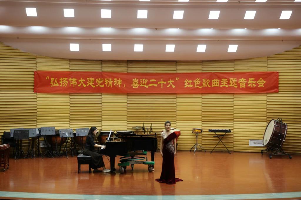 赓续红色精神血脉,用艺术的方式唱响主旋律。在对于红色音乐作品的回顾当中,我们同百年之前的革命先辈进行对话。走向民族复兴的路上,我们始终同心同德,意志坚定。在旋律中传承的不仅仅是党的故事和历史,更是党的精神和信念。在党的二十大到来之际,弘扬伟大建党精神,讲好党的故事,讲好中国故事,讲好中华民族的故事。不断汲取精神力量,释放青年力量。音乐学院学子当始终以党的精神为指导,为创作更多人民喜爱、昂扬向上的艺术作品积蓄能量。