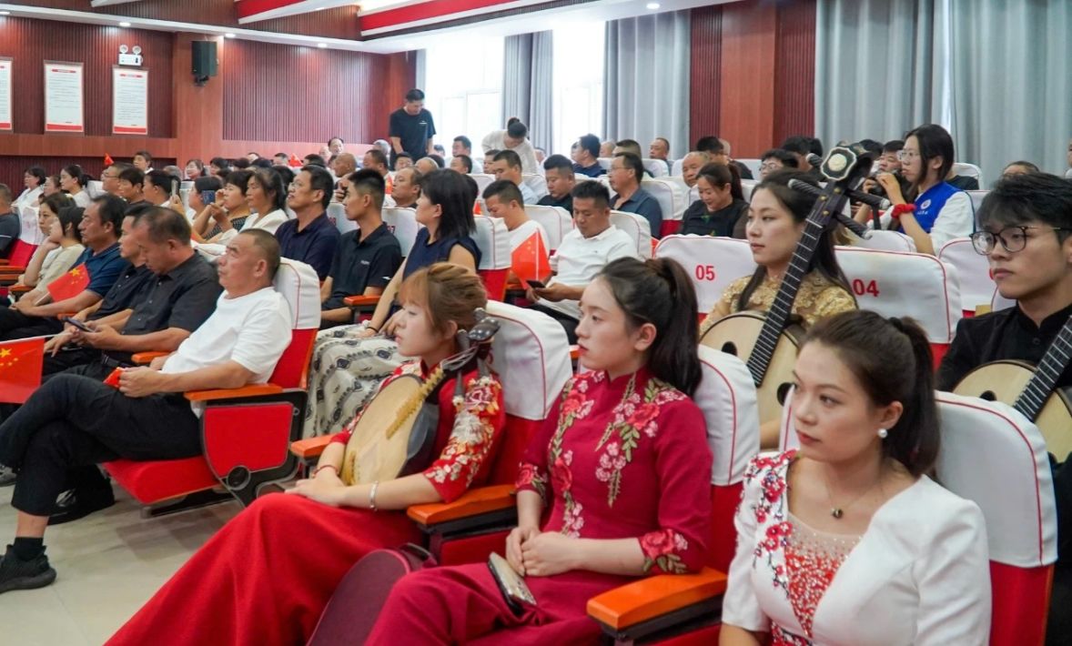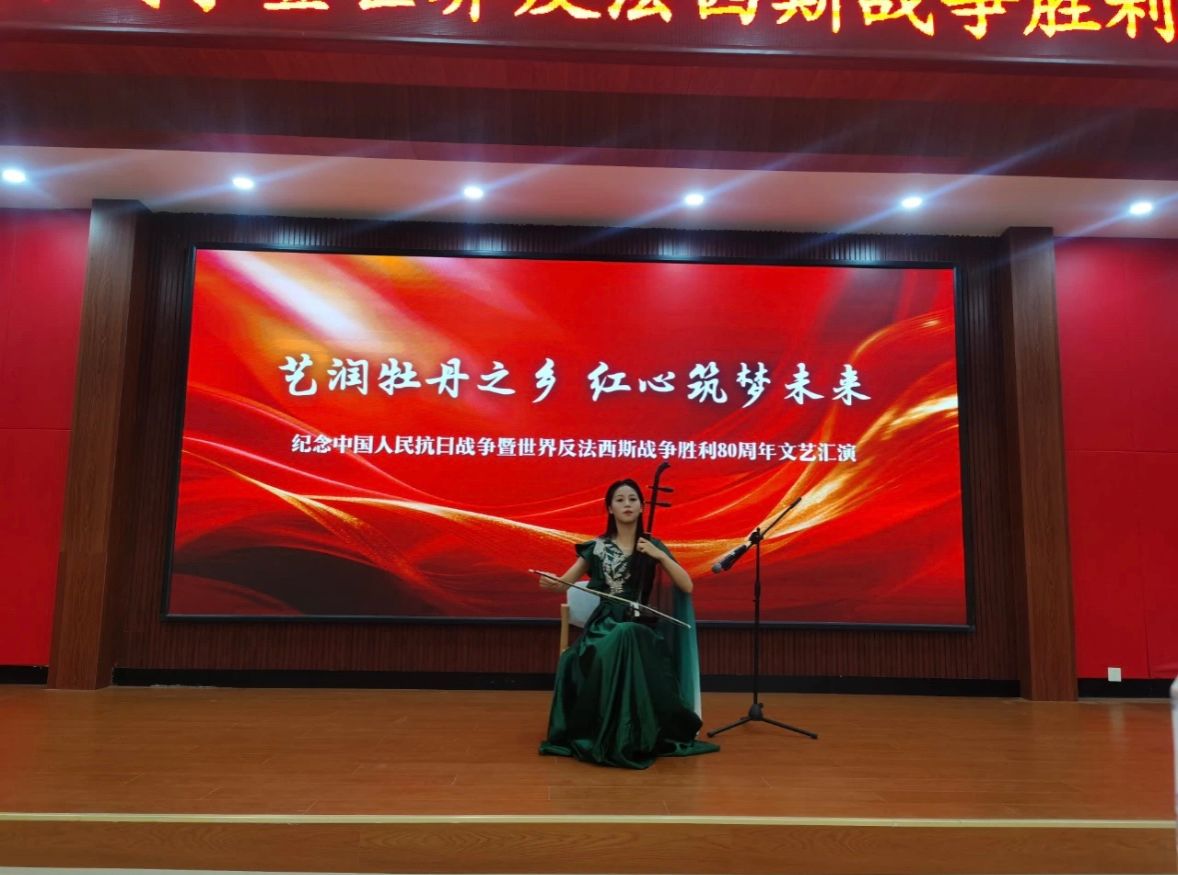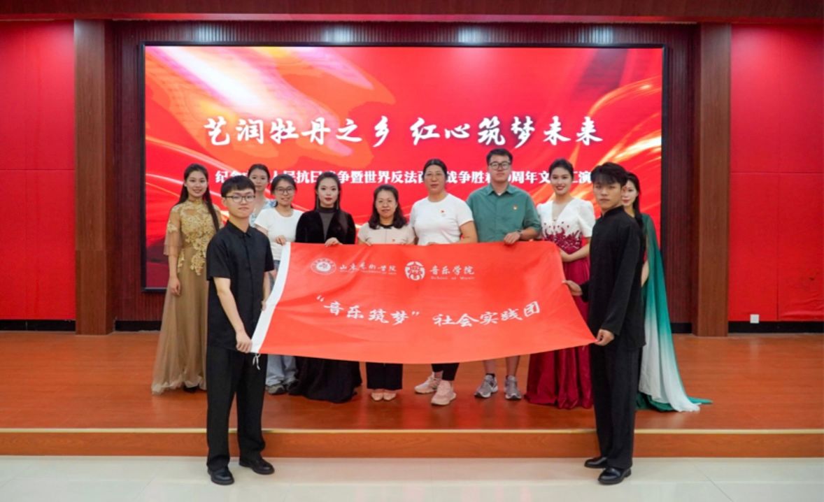 “音乐筑梦”社会实践团队员精心准备了文艺节目,为在菏泽市定陶区半堤镇政府举办的“艺润牡丹之乡、红心筑梦未来”纪念中国人民抗日战争暨世界反法西斯战争胜利80周年文艺汇演带来了精彩演出,与半堤镇群众共同回望历史、感恩新时代。半堤镇党委副书记、镇长王允涛,半堤镇党委副书记田琦、半堤镇组织委员李洁茹,音乐学院党委副书记李巍巍,实践团师生与当地百姓共同观看演出。