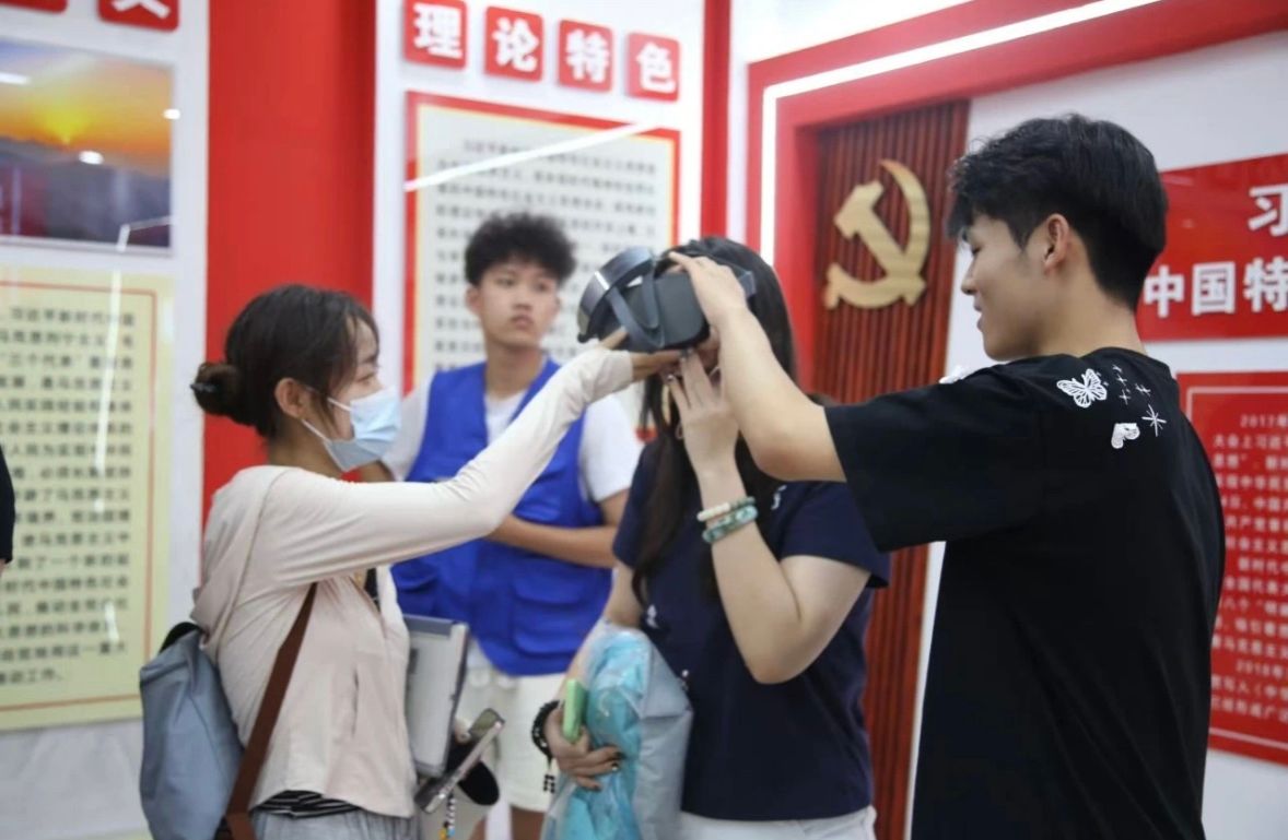 通过讲解,师生们了解了当地红色历史、革命人物与时代楷模事迹、定陶区的发展历程等,在体验区佩戴VR眼镜进行了沉浸式党的理论知识学习。